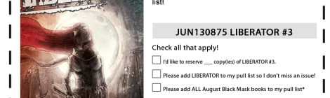 Hi guys, Just a quick note to ask you to please PRE-ORDER Liberator #3 today or the next time you’re at your local comic store. Either print the coupon below […]