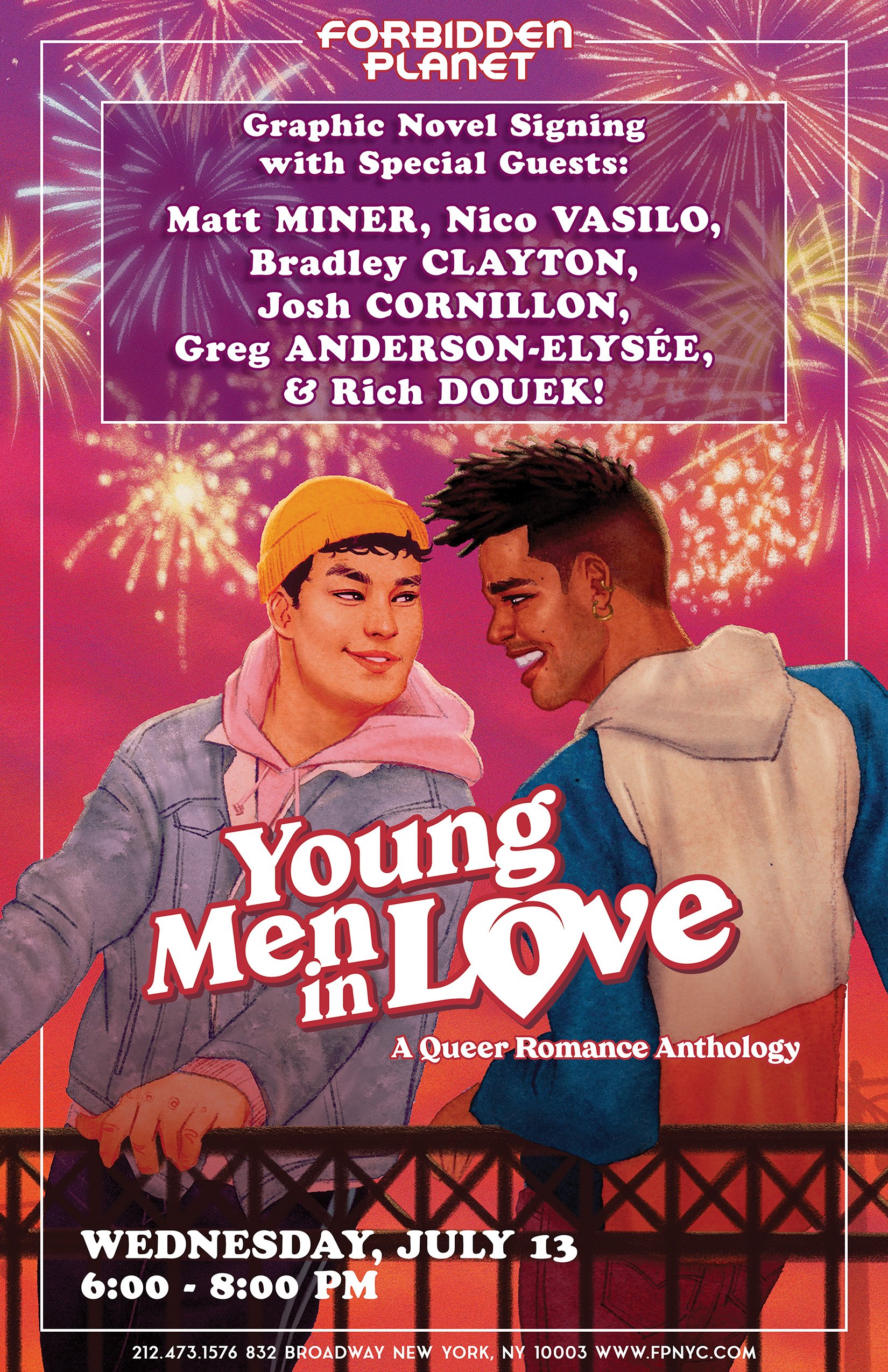 Please show up, New York City, HOWEVER if you can’t make it, click here to pre-order signed copies from Forbidden Planet: https://www.fpnyc.com/young-men-in-love-gn/9781949518207/graphic-novels/pre-order-gns/